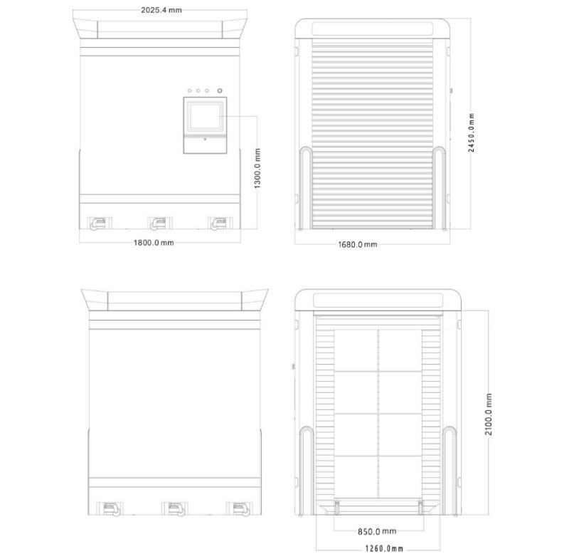 | 外部尺寸 | 1800(长) x 1680 (宽)x 2450 (高)mm |